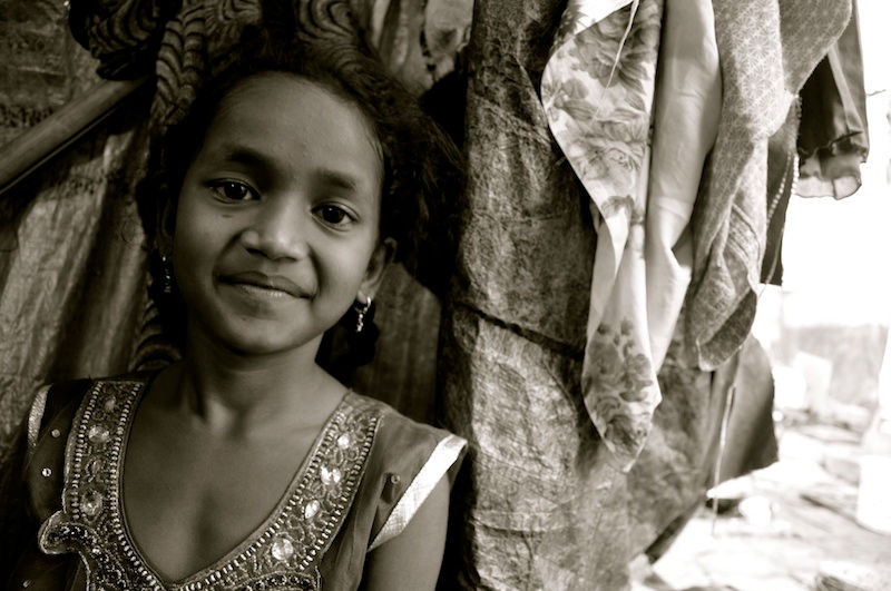 Five year old Noorsaba who put flowers in her hair for this photo.
